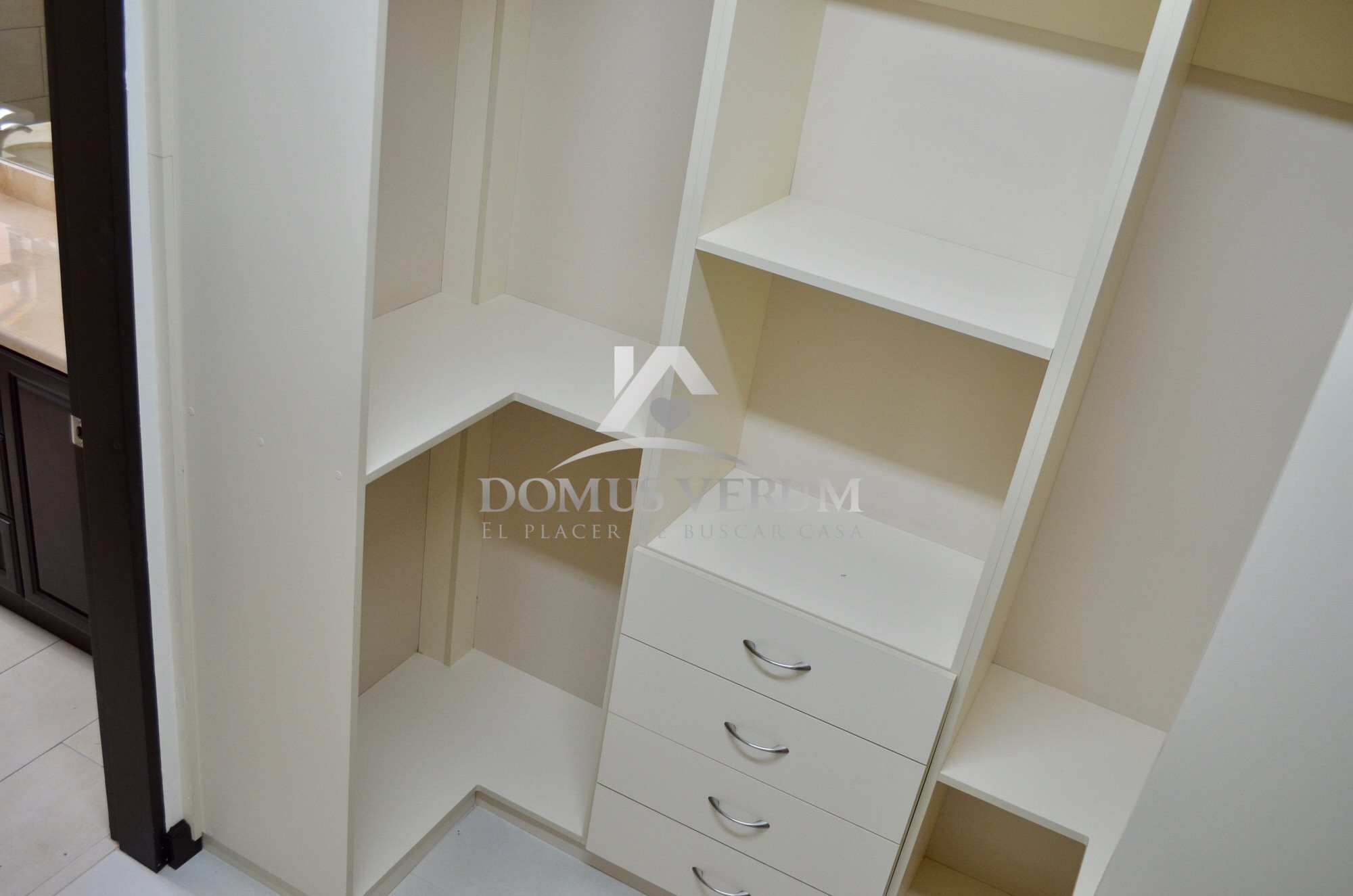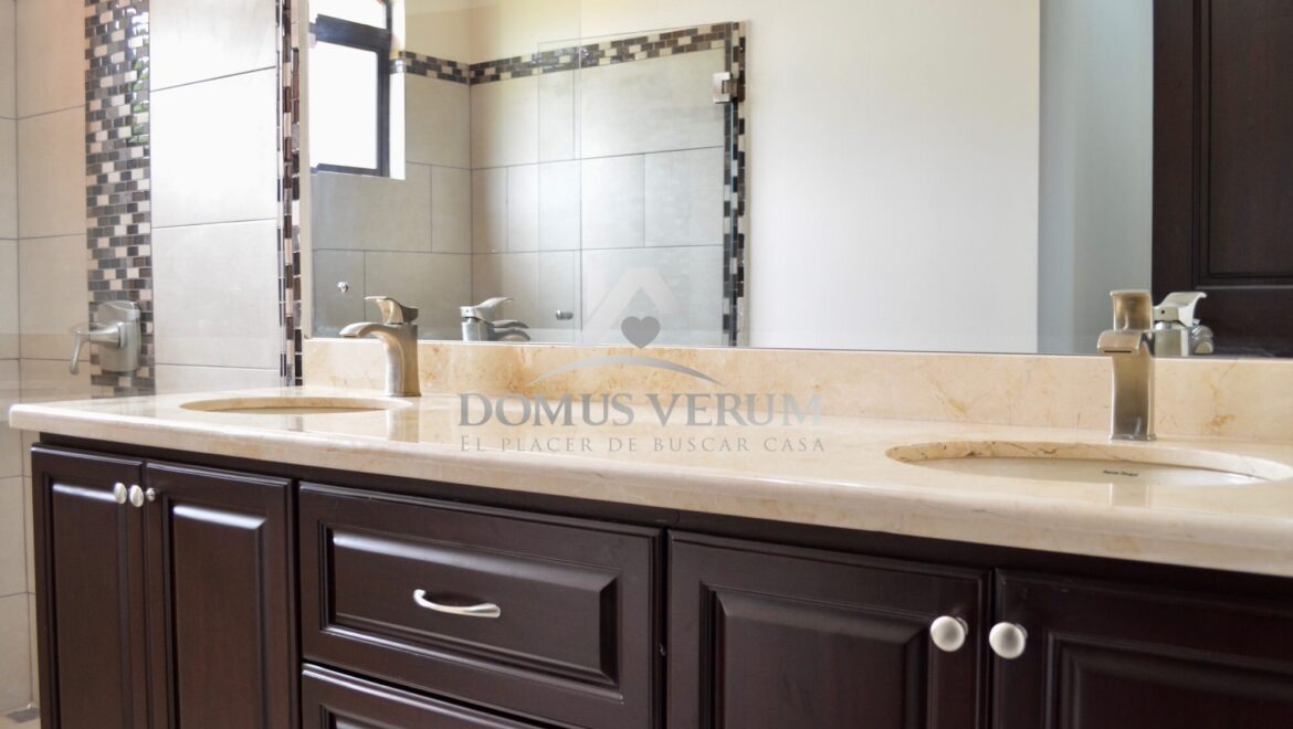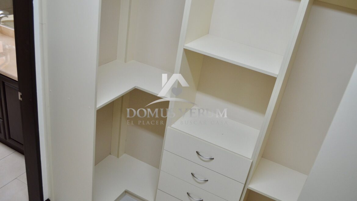 Habitación principal muy amplia, espacio para cama king, walk in closet, baño con ducha y doble lavabo.