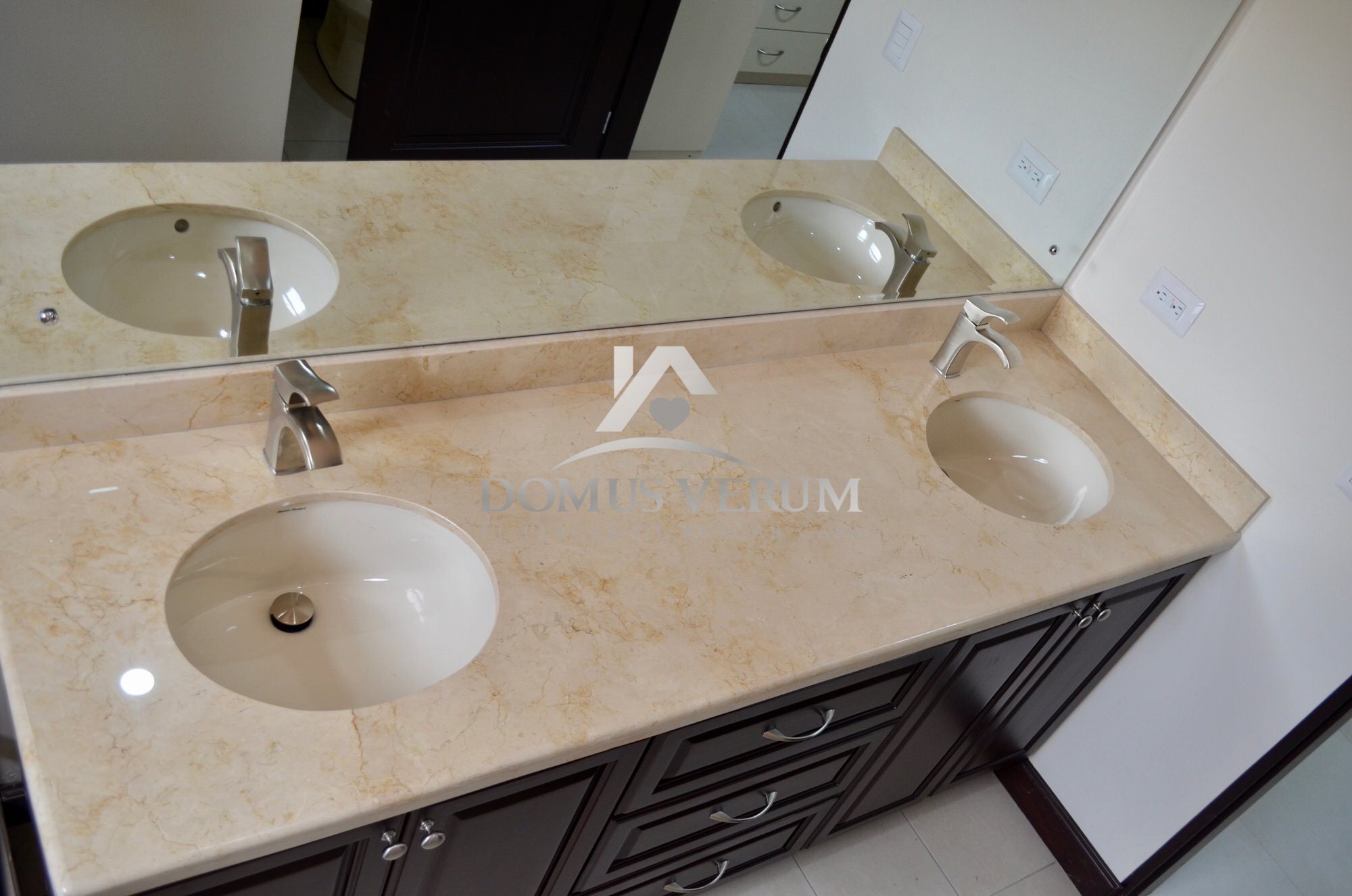 – Baños: 3, todos con muebles en madera, top en mármol, baño con ducha y vidrio temperado.
