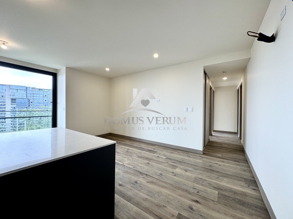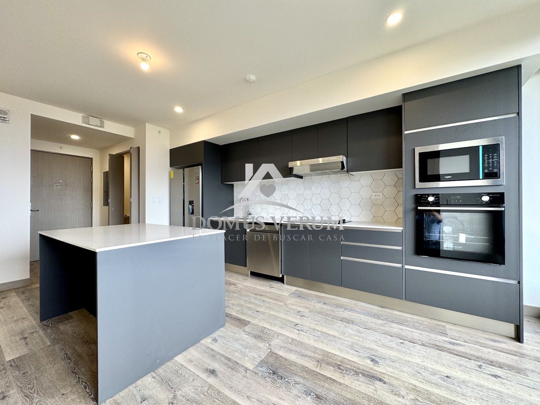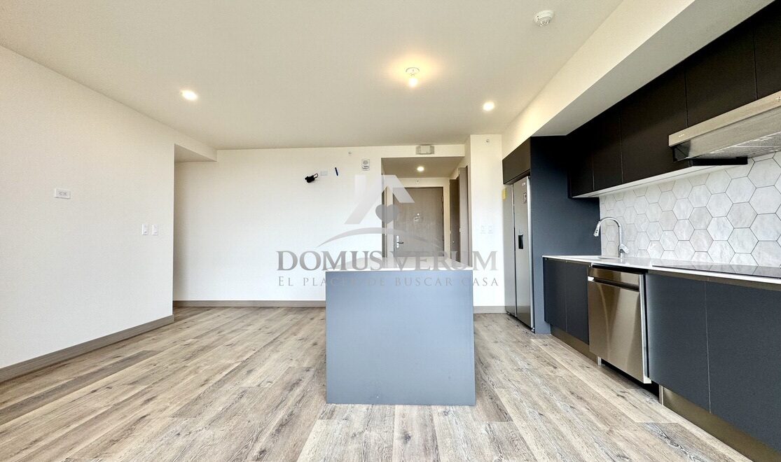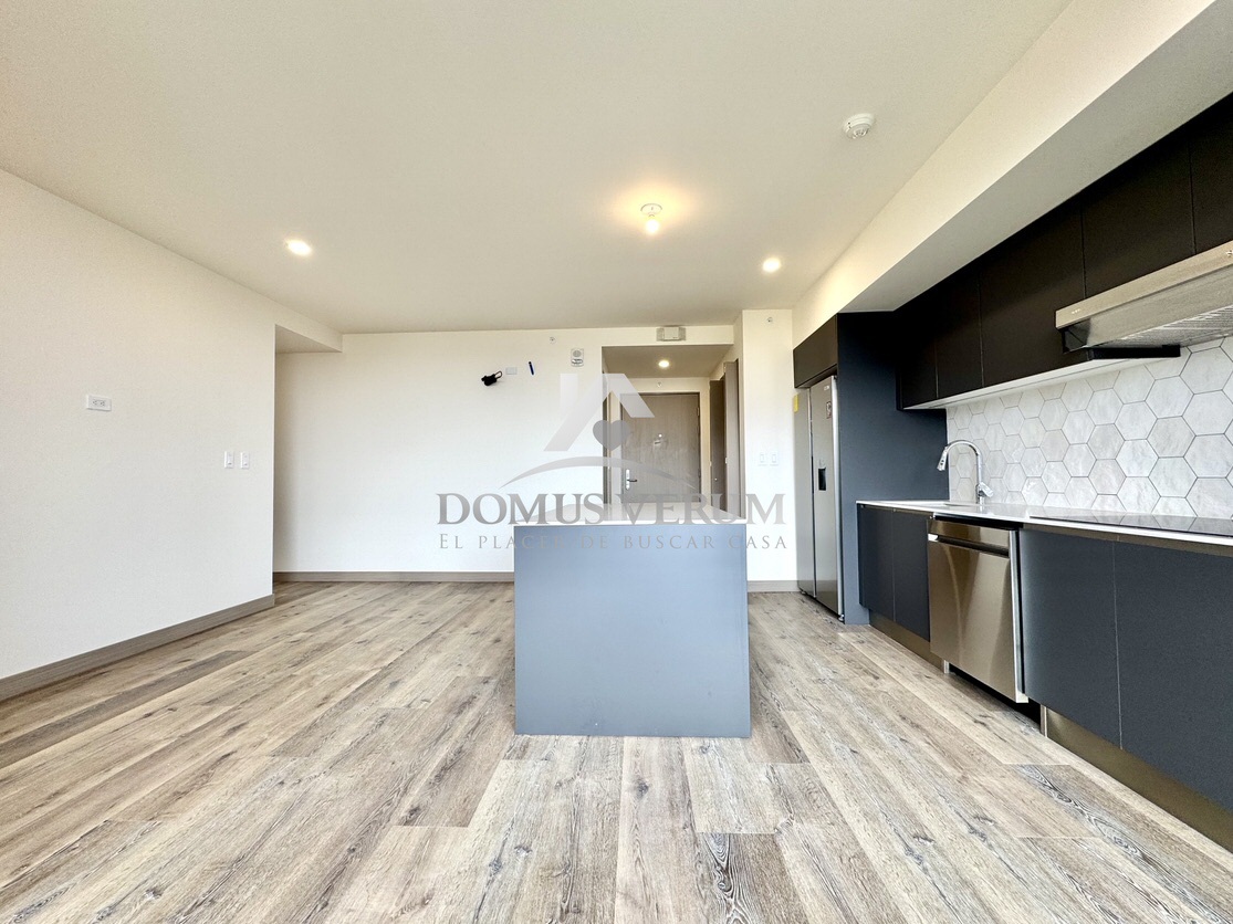 La sala-comedor de 22.5 m² se abre hacia un balcón privado con vistas panorámicas, creando el ambiente perfecto para compartir, trabajar o simplemente relajarte observando el atardecer.