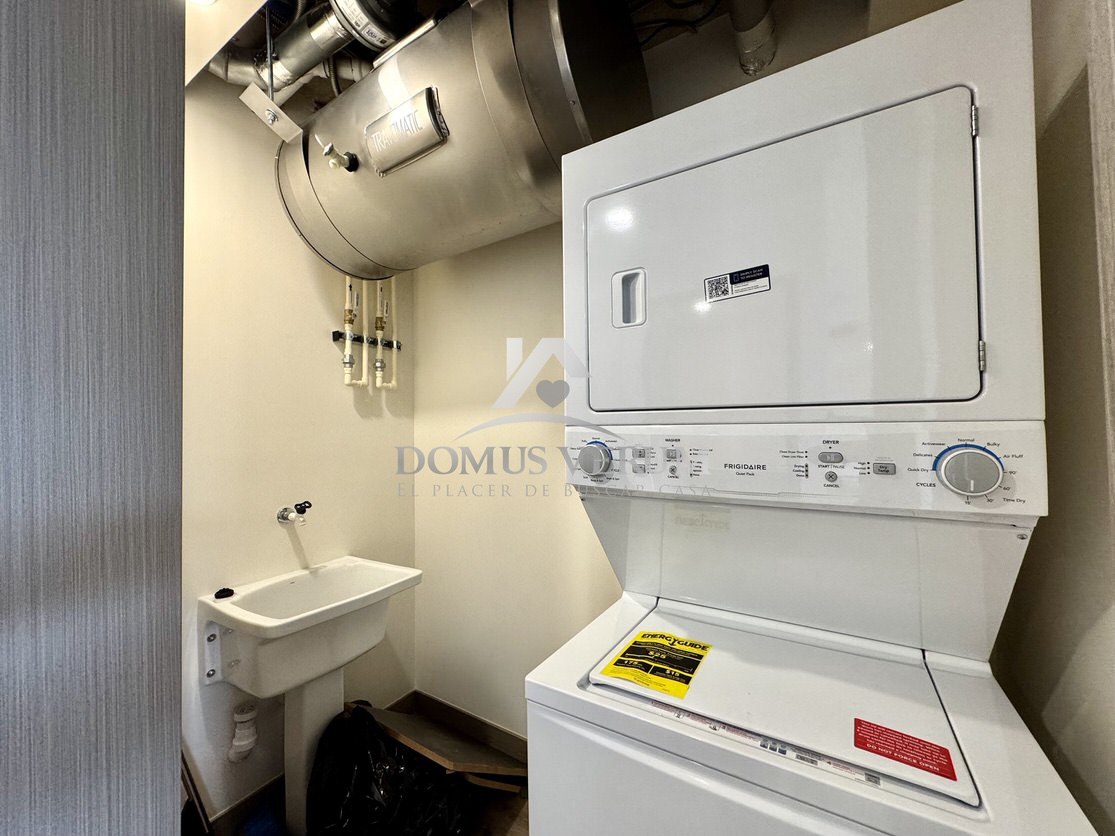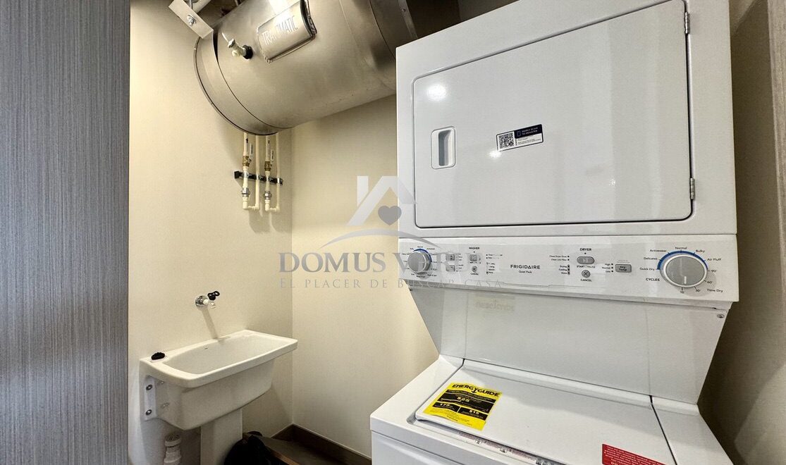 Área de pilas con lavadora y secadora en torre