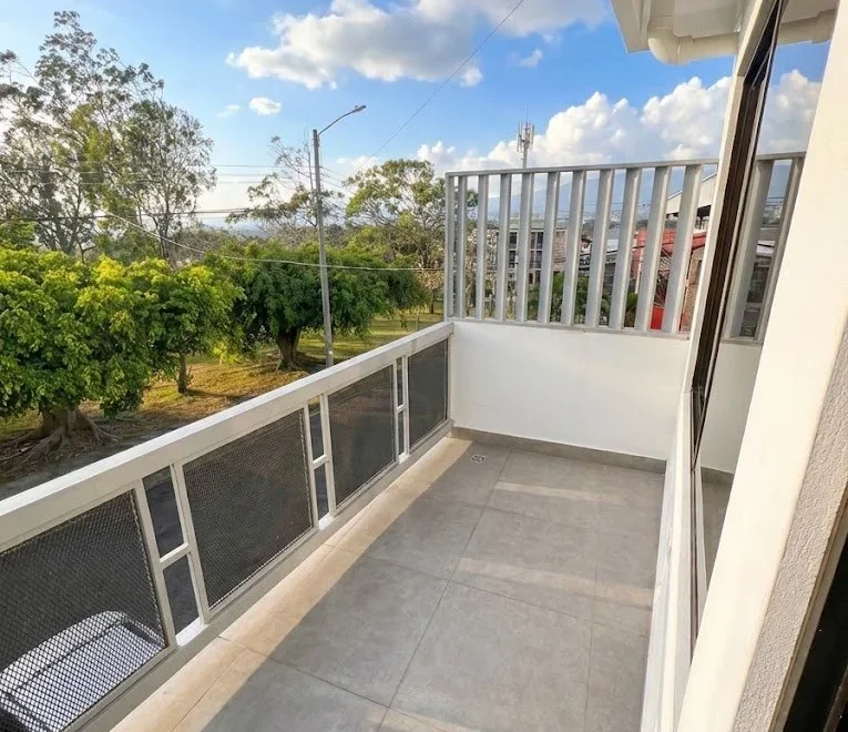 La habitación principal cuenta con un amplio balcón privado con excelente vista al parque, lo que brinda iluminación natural, ventilación cruzada y una agradable conexión con el entorno natural.