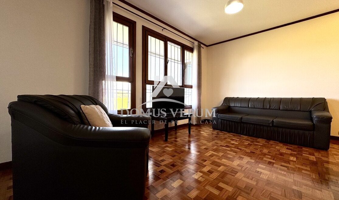 Acogedora sala de estar con agradables vistas a las áreas verdes.