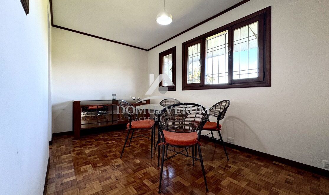 Al ingresar al apartamento, lo primero que destaca es la calidez de la madera, cuidadosamente mantenida, y el hermoso piso de la sala elaborado en madera Cristóbal, una pieza única que realza el carácter del espacio.