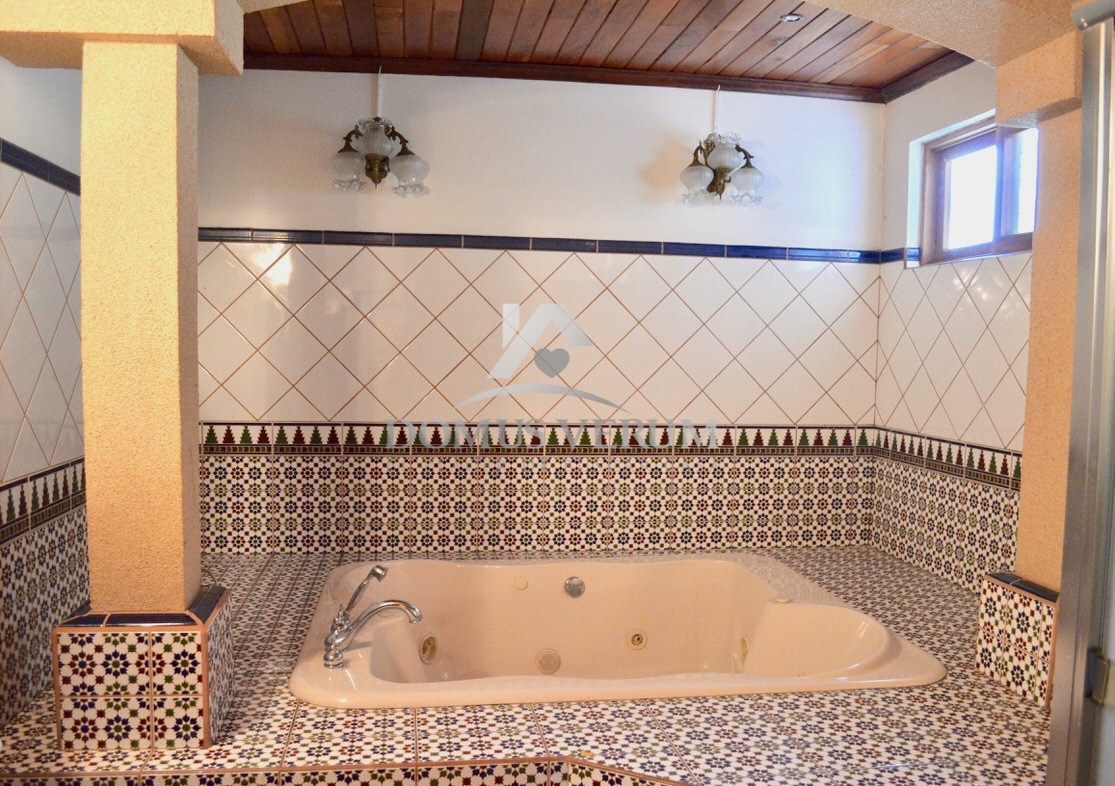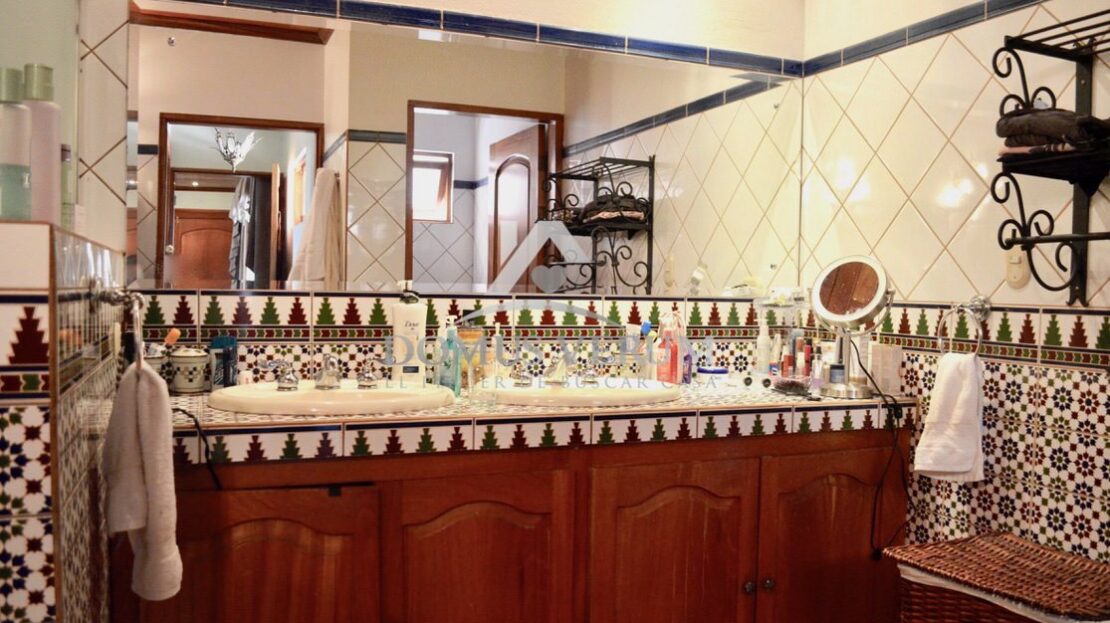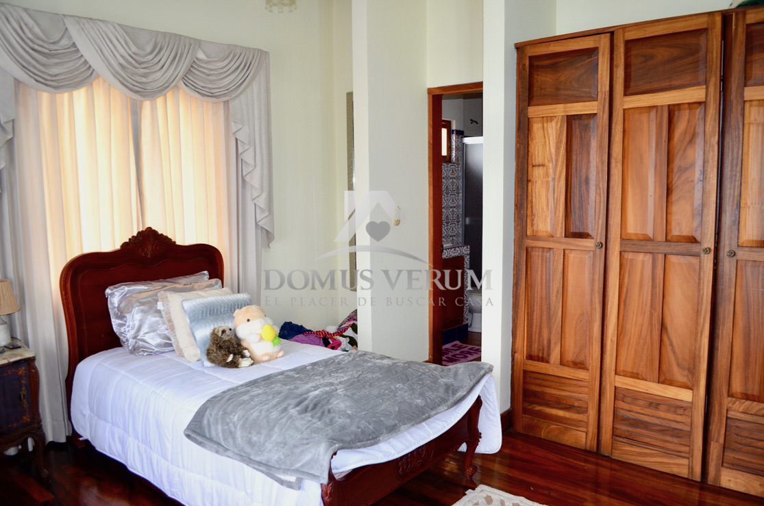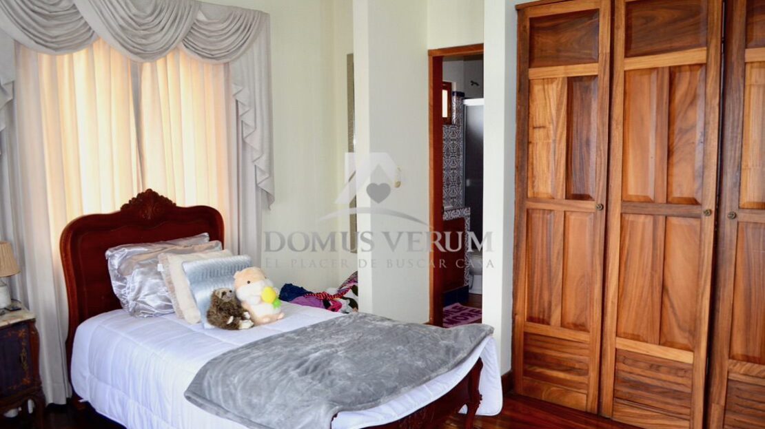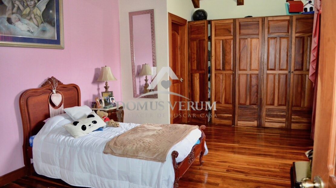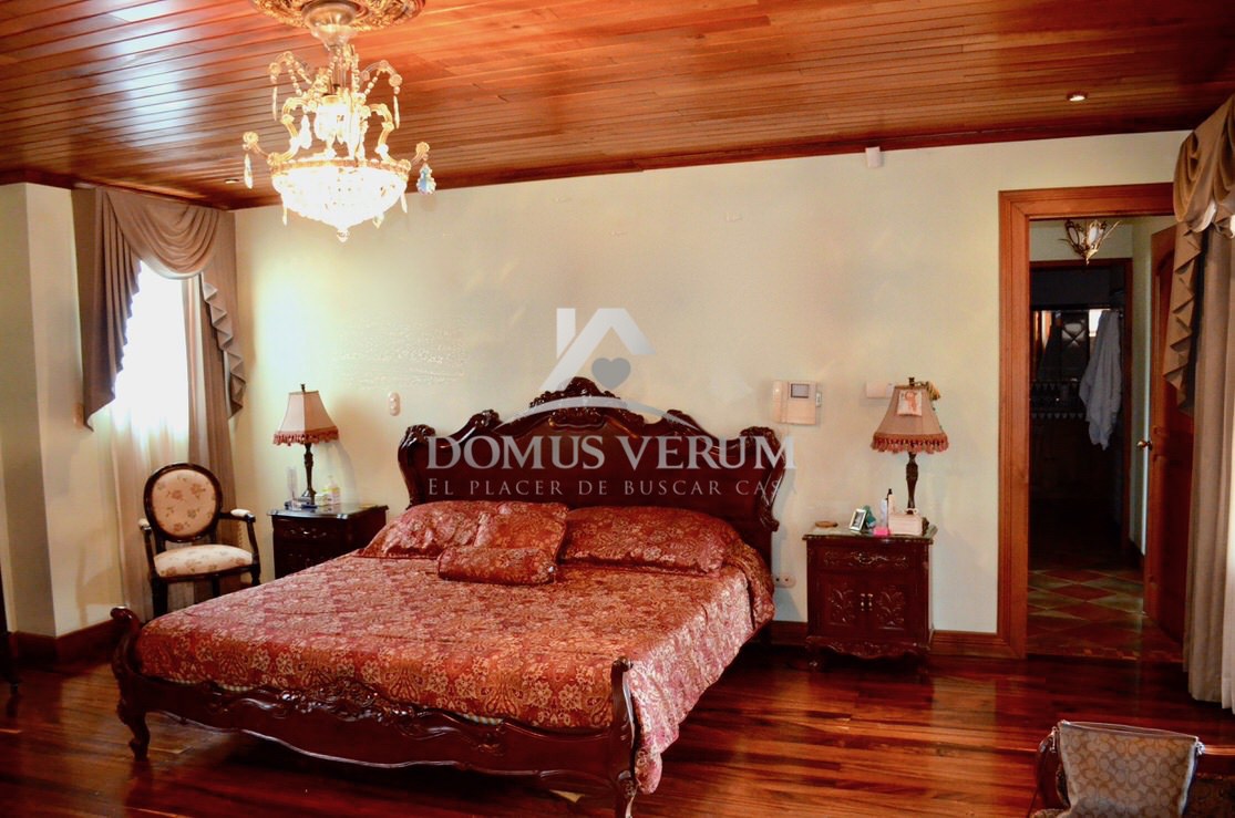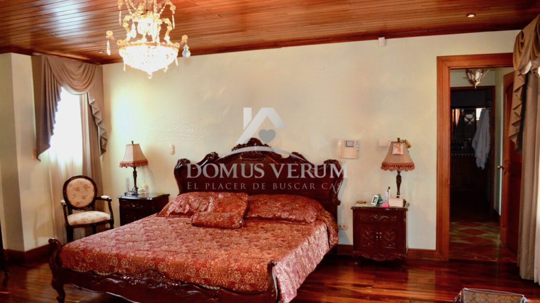 Al otro lado de la casa tenemos la habitación principal con suficiente espacio para cama king, sus mesas de noche, escritorio y mucho mas. La misma cuenta con su walk in closet, y su propio baño, con ducha independiente, doble lavabo, mueble en madera y un hermoso jacuzzi.