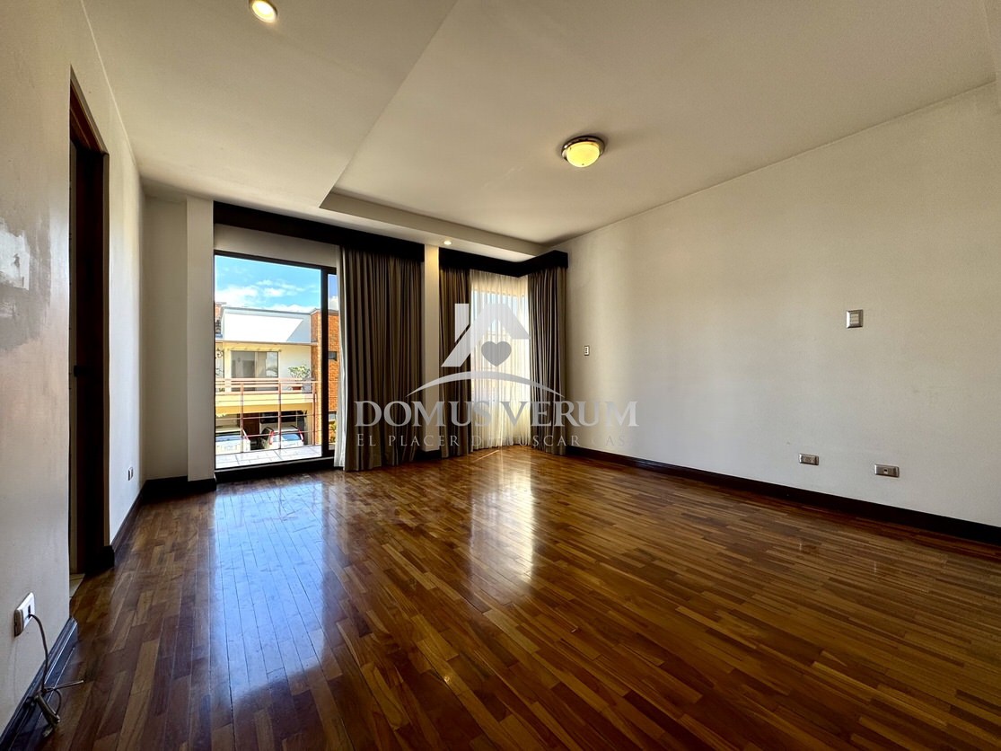 Habitación principal con piso de madera: