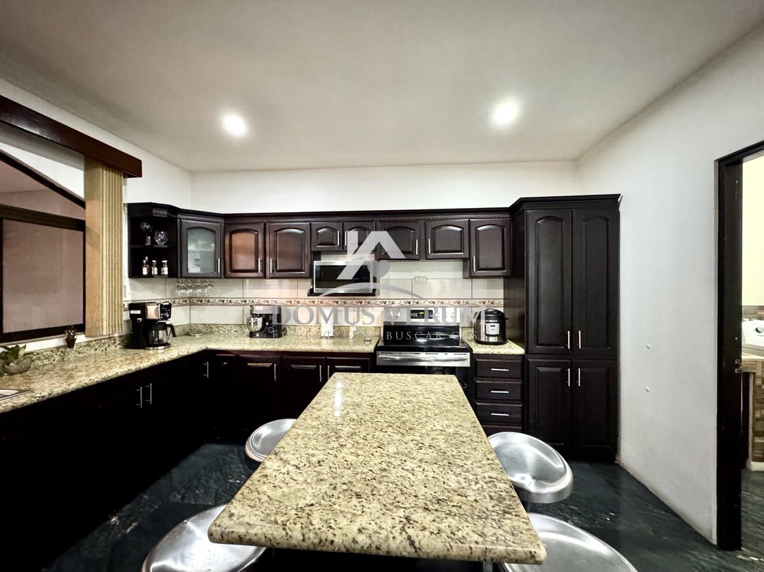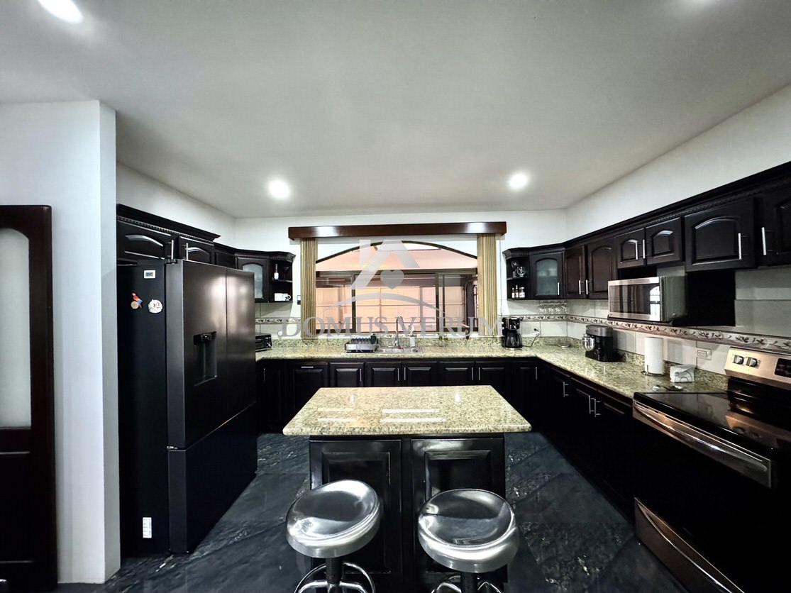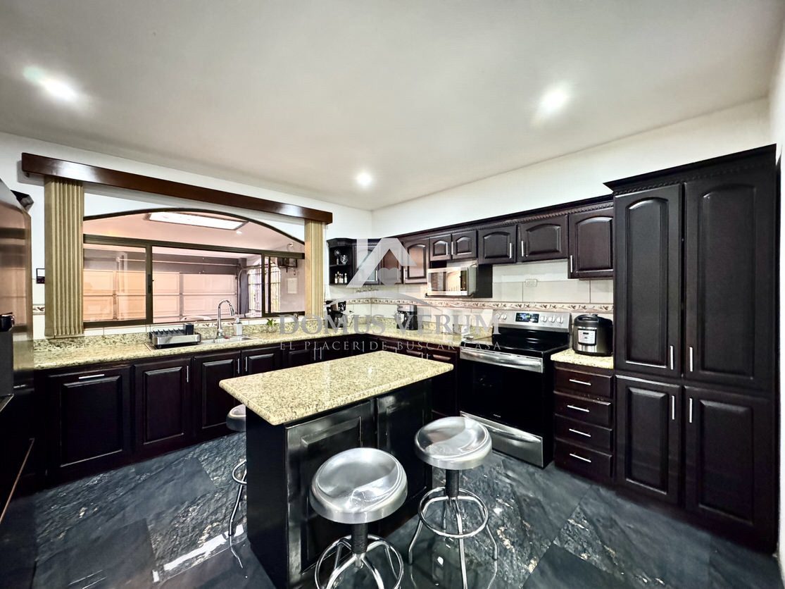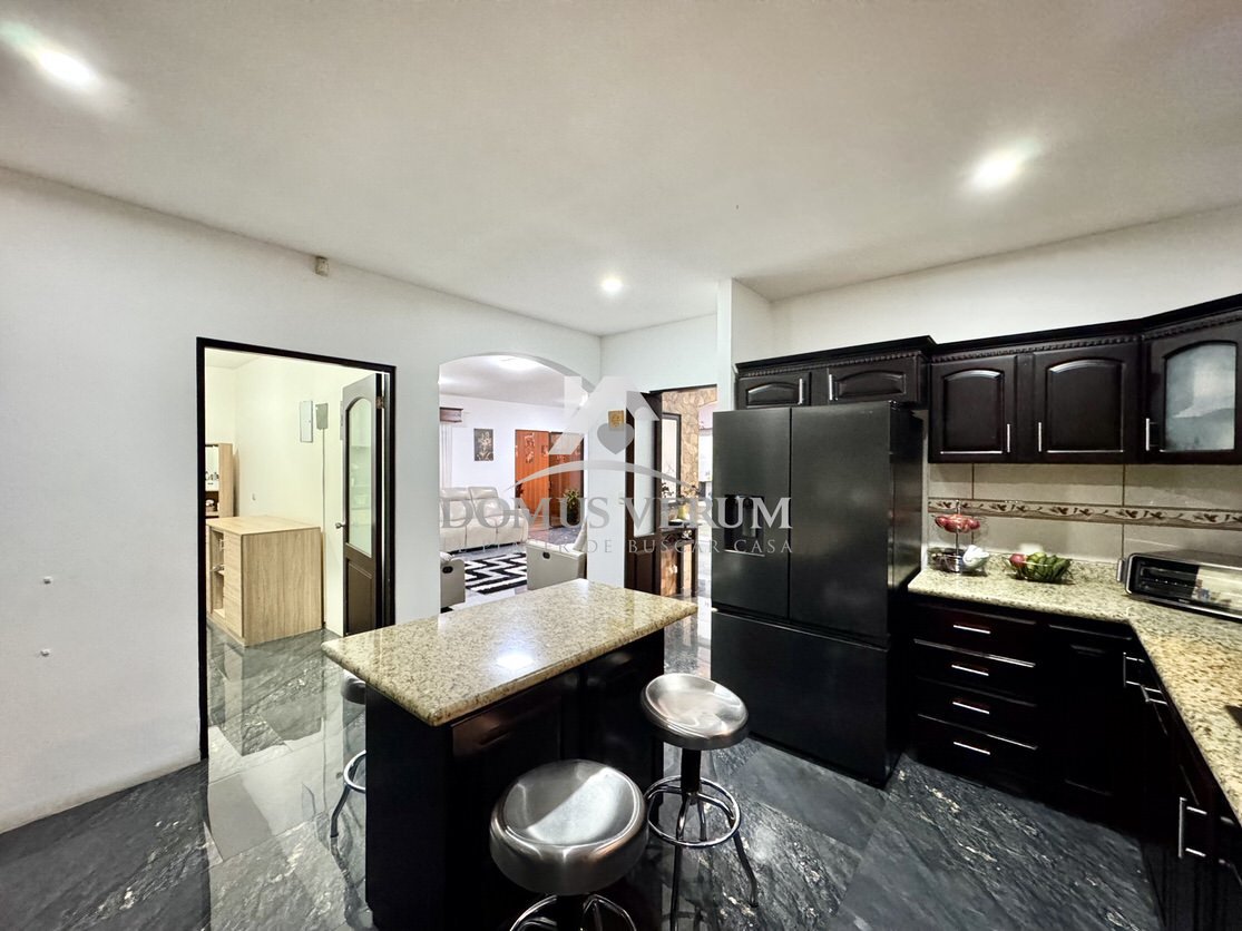 La cocina es muy generosa, equipada con muebles en madera sólida y sobres en granito, ideal para quienes disfrutan cocinar o compartir alrededor de una buena comida. También cuenta con una práctica bodega bajo las gradas, medio baño de visitas, área de pilas espaciosa y estacionamiento para dos vehículos bajo techo con portón eléctrico.